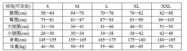 ไซส์ 2XL : น้ำหนัก 55-60 กก รอบเอว 27-30 นิ้ว รอบสะโพก 37-38 นิ้ว